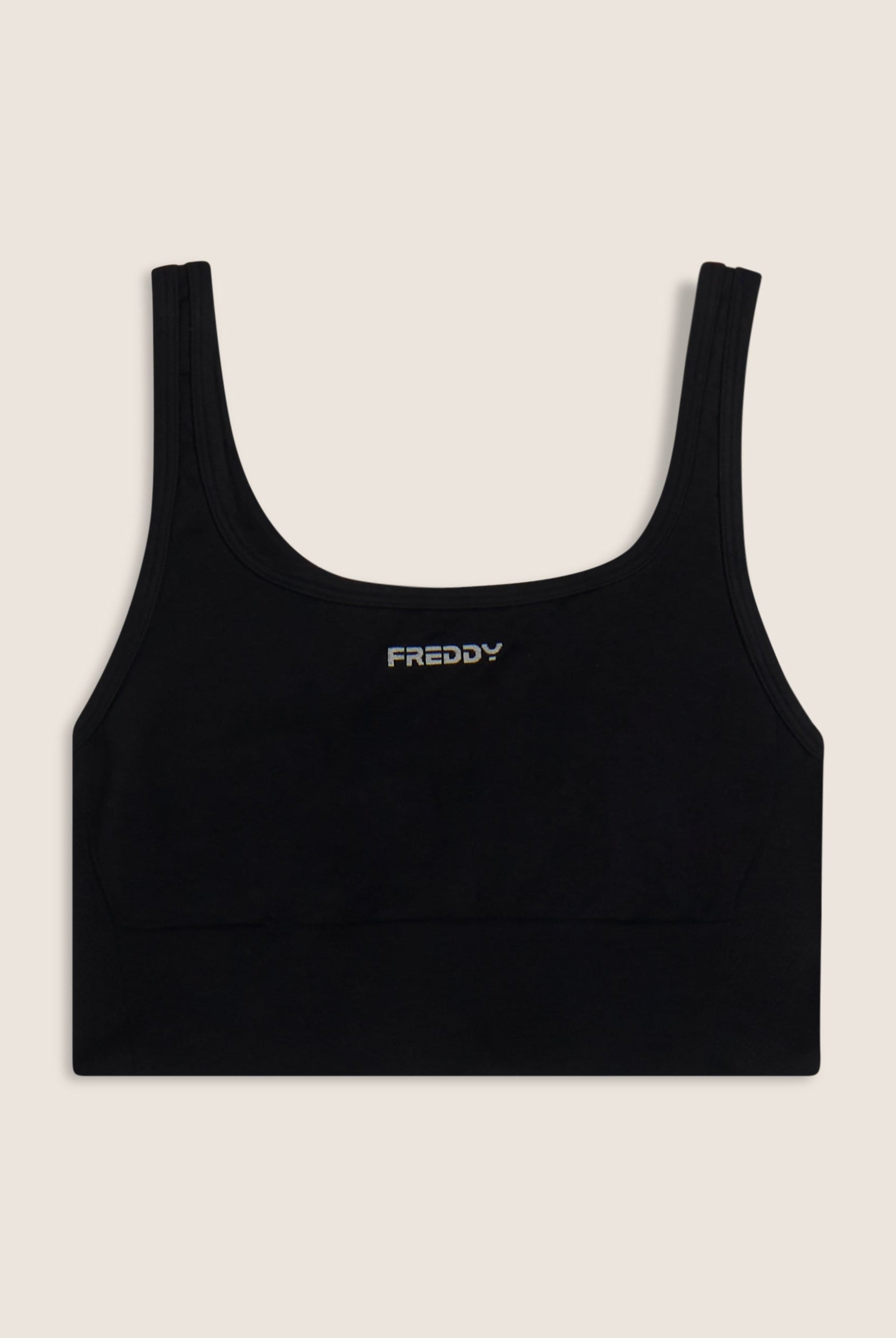 100% Made in Italy ist unsere Kollektion mit ökologischen und nachhaltigen Produkten, die vollständig in Italien entwickelt, designed und produziert werden. Der Kern der Kollektion ist die ökologische Wirkung und das Ziel, einen kleineren ökologischen Fußabdruck zu lassen. Für die 100% Made in Italy Kollektion wählt Freddy Stoffe von Brugnoli™. Diese basieren auf der Br4™-Technologie, bei deren Entwicklung das Augenmerk auf einem ökologischen und nachhaltigen Produktionsprozess liegt. Das 100% biobasierte Polyamid (EVO von Fulgar®) besteht aus Rizinusöl. Das Resultat ist BIO D.I.W.O.®: leichtes, blickdichtes, schnell getrocknetes, thermoregulierendes und nachhaltiges Material. Aus diesem revolutionären Stoff besteht für Yoga entworfene Kleidung, in der du eins mit deinen Körperbewegungen bist und dich flexibel und selbstbewusst fühlst.