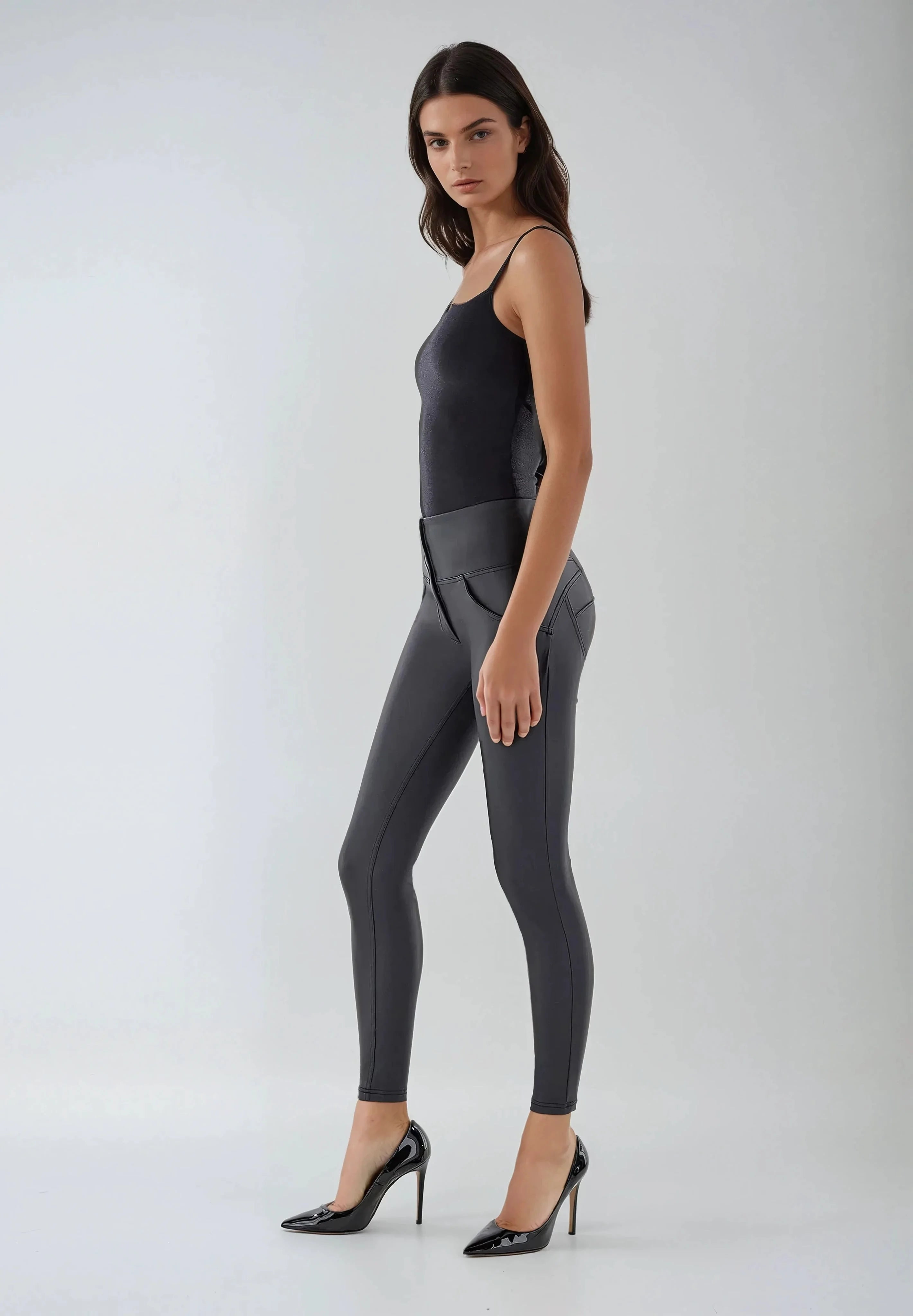 Eine knackig enge Lederhose ist eine sehr gute Anschaffung, die das gewisse Etwas in dein Outfit bringt. Unsere Ecolederhosen werden aus elastischem Kunstleder hergestellt, und sie sind gleichzeitig absolut sexy und bequem. Geht das? Na klar – mit Freddy! Kombiniere die leicht glänzende Lederleggings mit High Heels und einem Top zu einem schicken Party-Outfit, oder mit Slippern und T-Shirt zu einem coolen und trendigen Look.