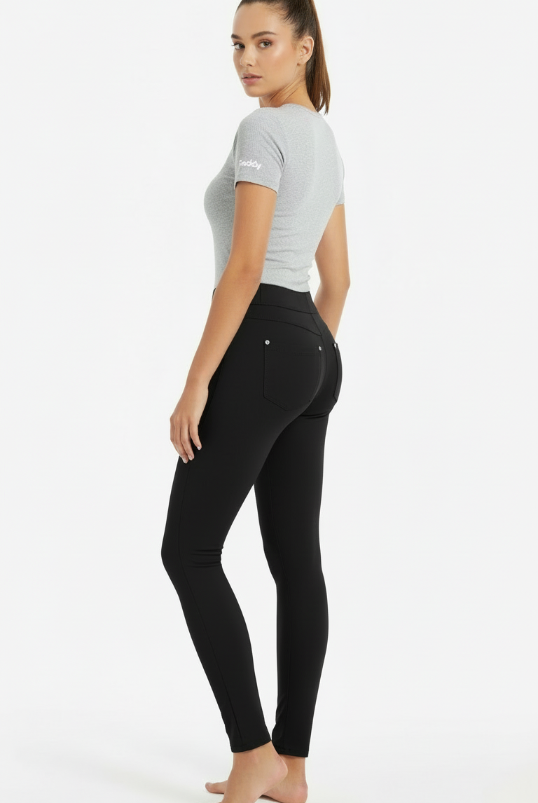Freddy N.O.W.® Yoga Vegan Leather Damen Comfort Lederhose - High High Waist Super Skinny - Schwarz - N0