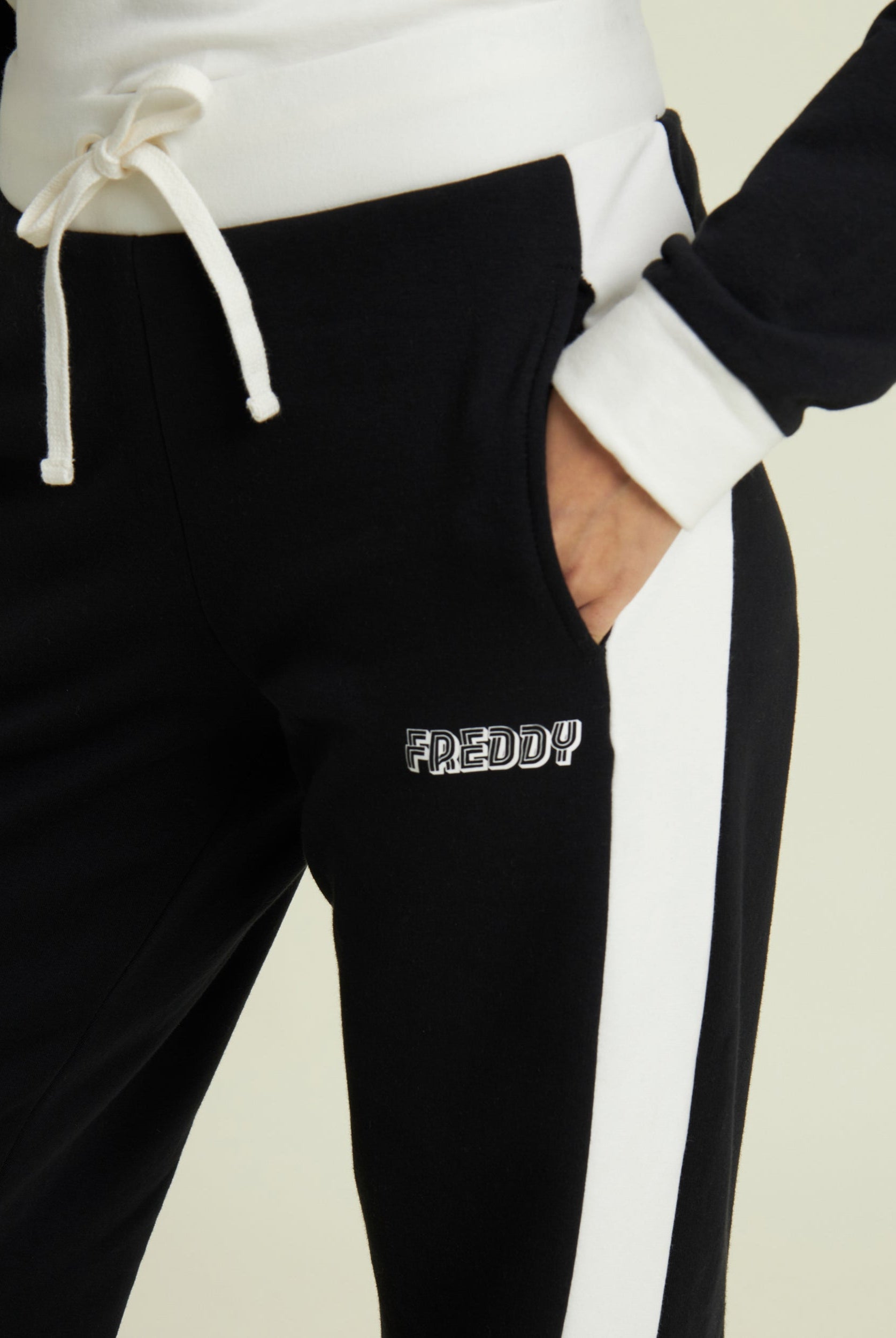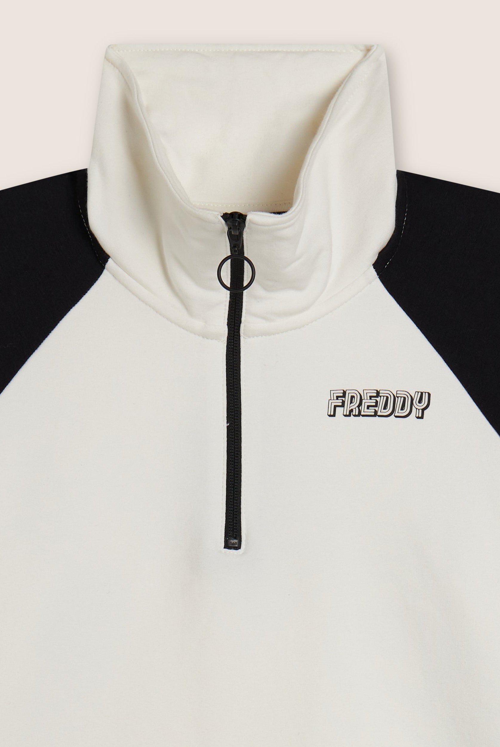 Two-tone cropped sweatshirt with half-zip and turtleneck