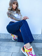 Fit Jeans Pants in Blue: designed to flatter and move with you. This piece impresses with a sophisticated wide-leg palazzo style for a flowing silhouette. Adding to that is a timeless full length, perfect for any season. The look is completed by a flattering high waist that offers gentle support. Crafted to offer the classic look of denim with the comfort of soft, flexible fabric. Pants that effortlessly blend comfort and fashionable looks.