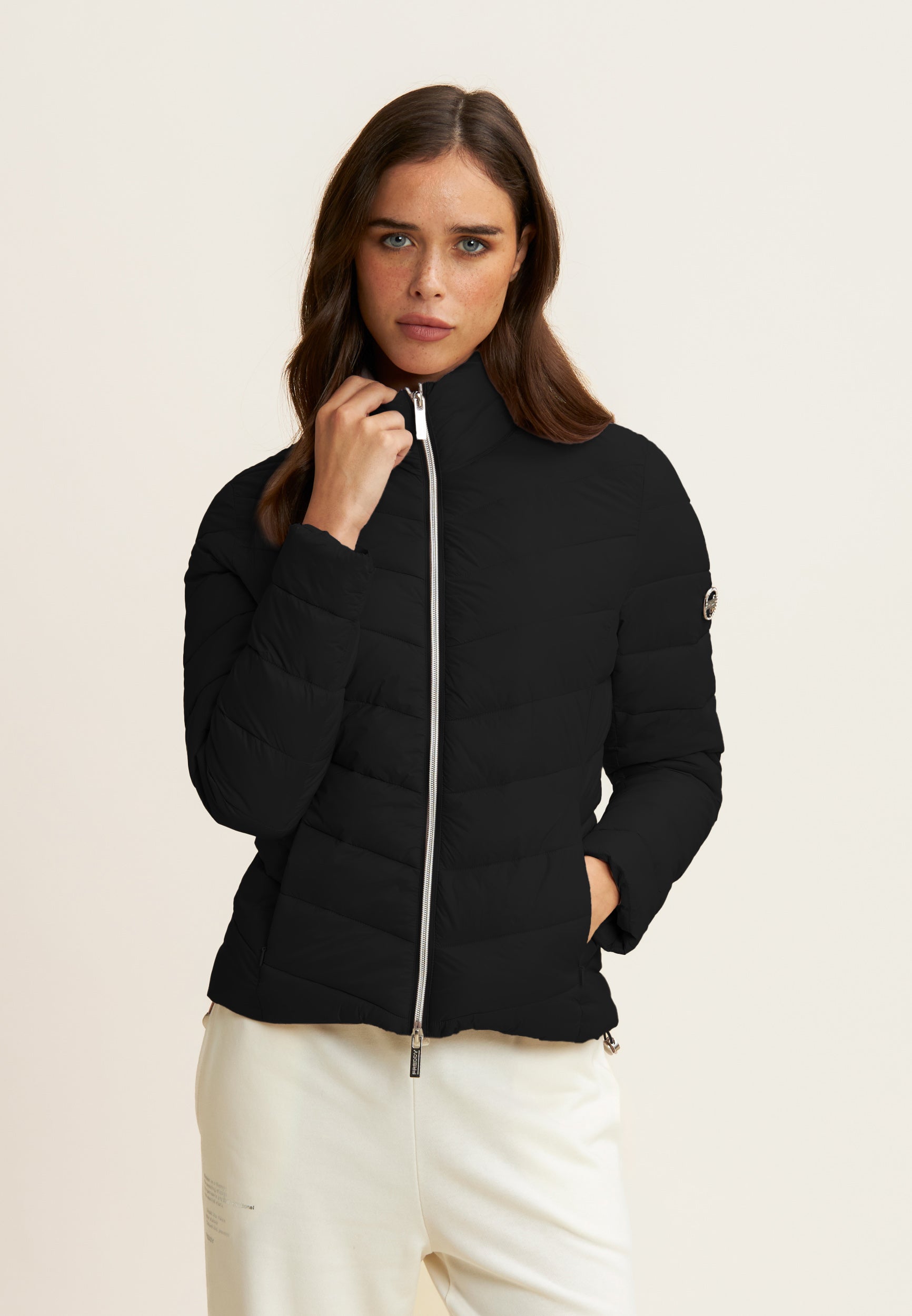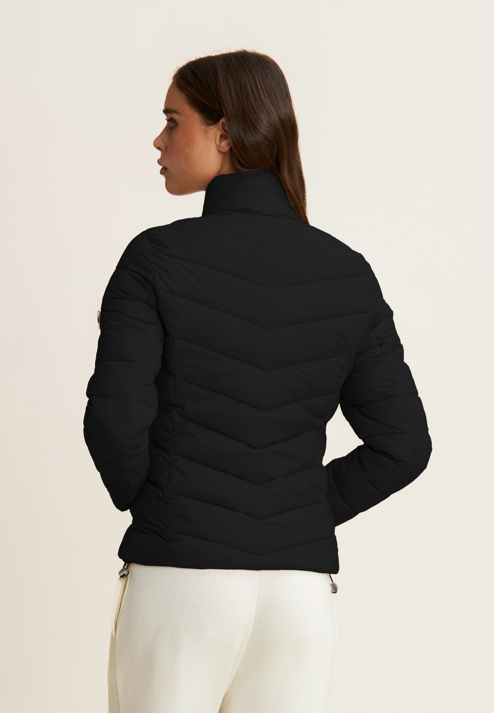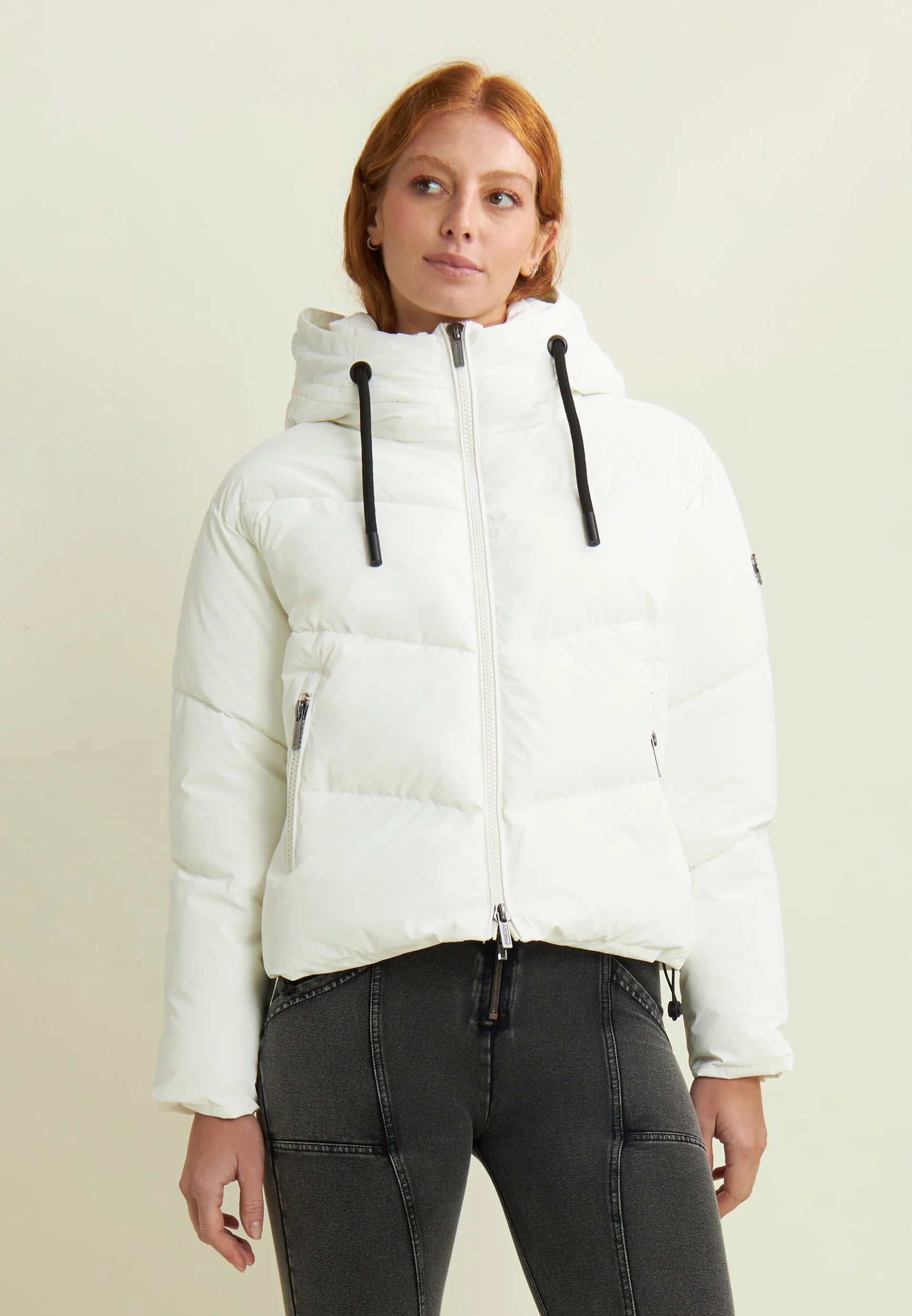 Women's cropped down jacket with turtleneck and adjustable drawstring