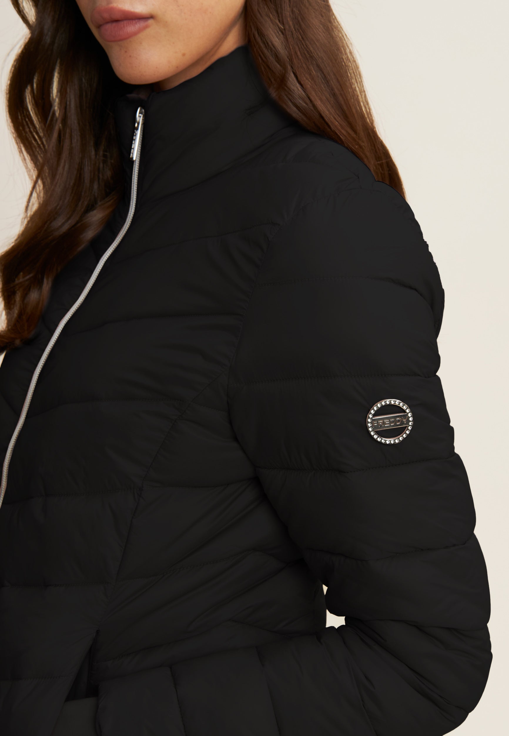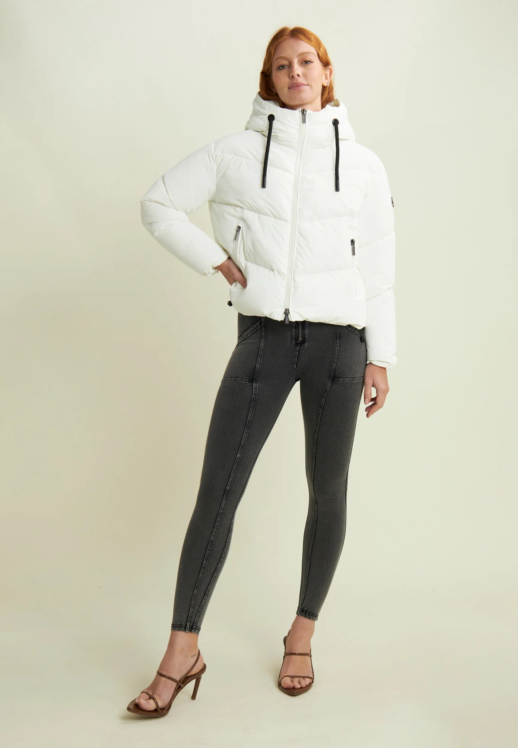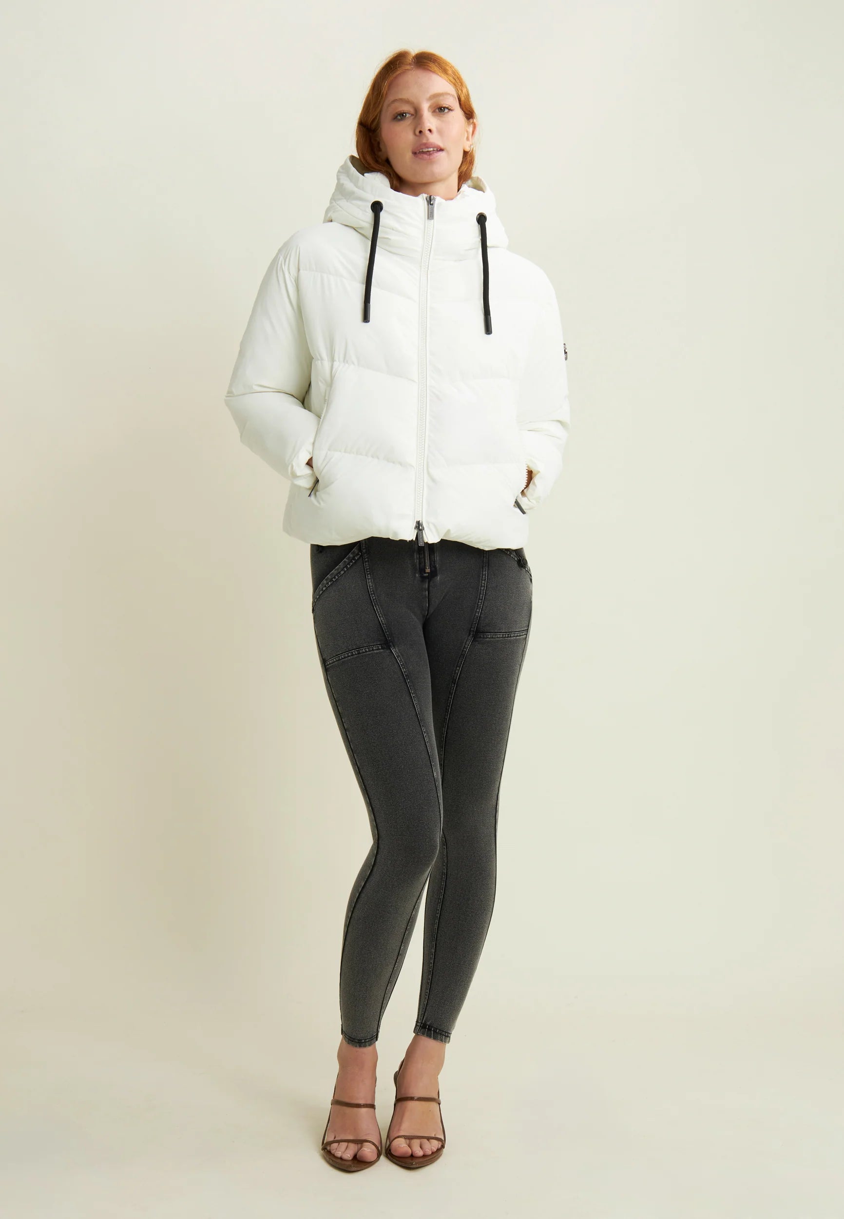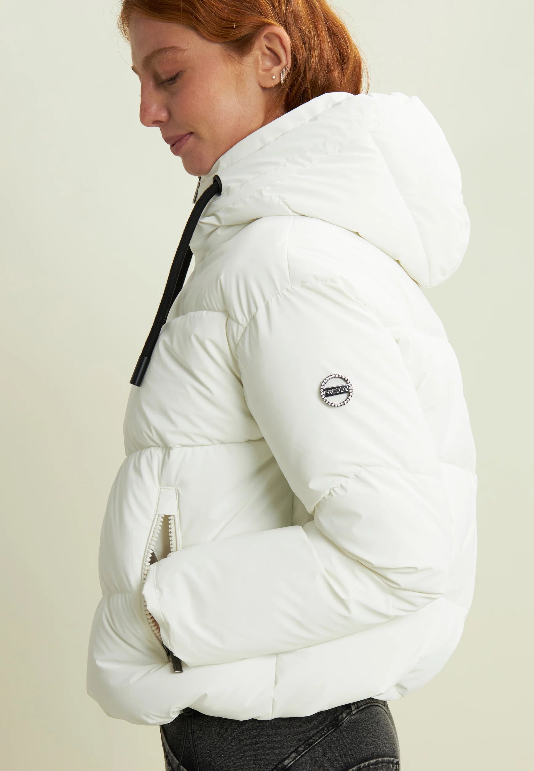 Women's cropped down jacket with turtleneck and adjustable drawstring