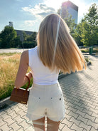 Experience the unique fit and feel of the Fit Jeans Shorts in Beige. They feature a fresh shorts cut for sunny days and active moments. Adding to that is a comfortable mid waist for everyday ease. Crafted to offer the classic look of denim with the comfort of soft, flexible fabric. Perfect for countless occasions, from casual to chic.