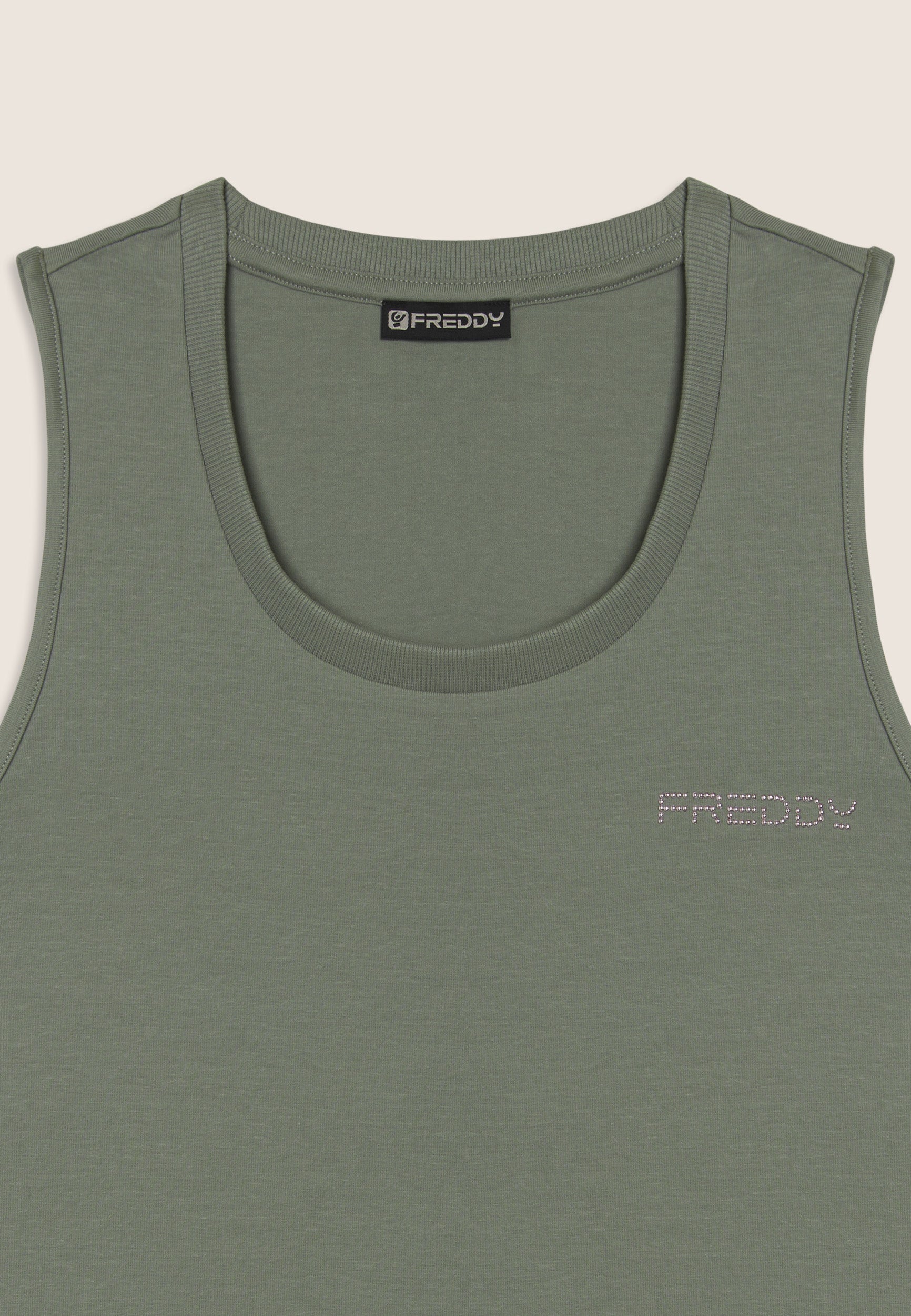 Regular tank top with FREDDY logo and elastic inserts - Iceberg Green