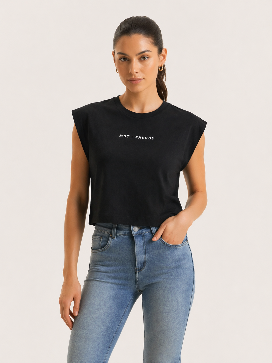 Short-sleeved t-shirt, cropped, with MST FREDDY prints - Black