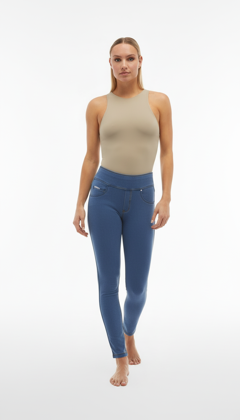 The N.O.W.® line of trousers supports your every movement without constraints thanks to the special four-way stretch, durable, denim-effect jersey fabric that facilitates movement. At the same time, it perfectly echoes the lines of the body, defining without constricting the silhouette.