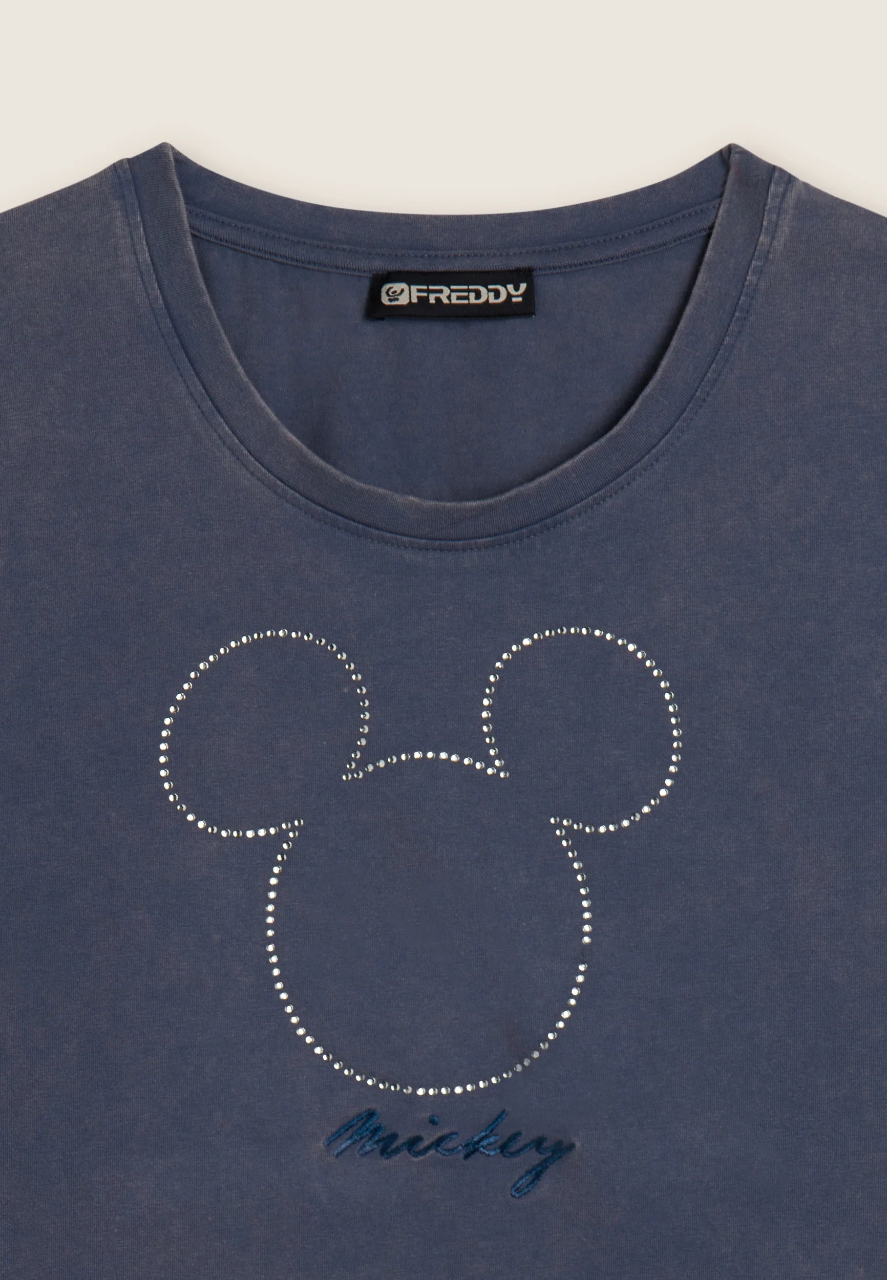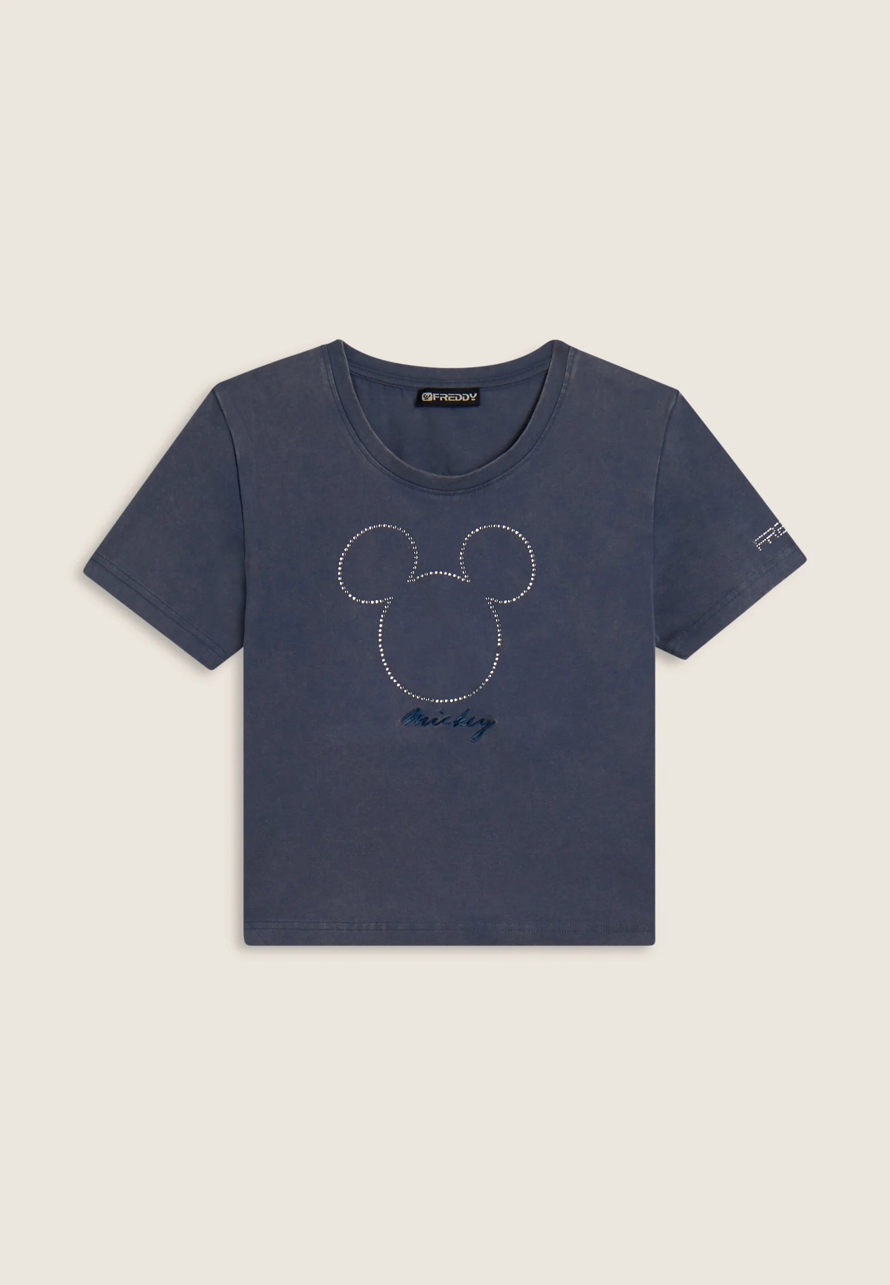 Women's cropped T-shirt with rhinestone Mickey Mouse