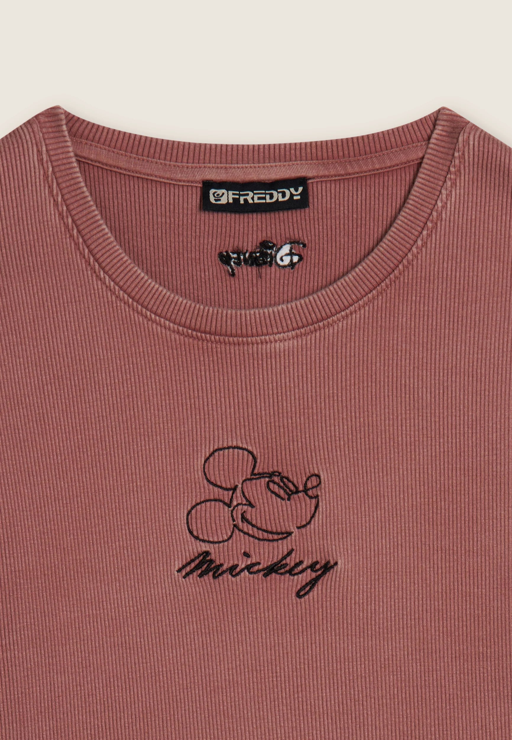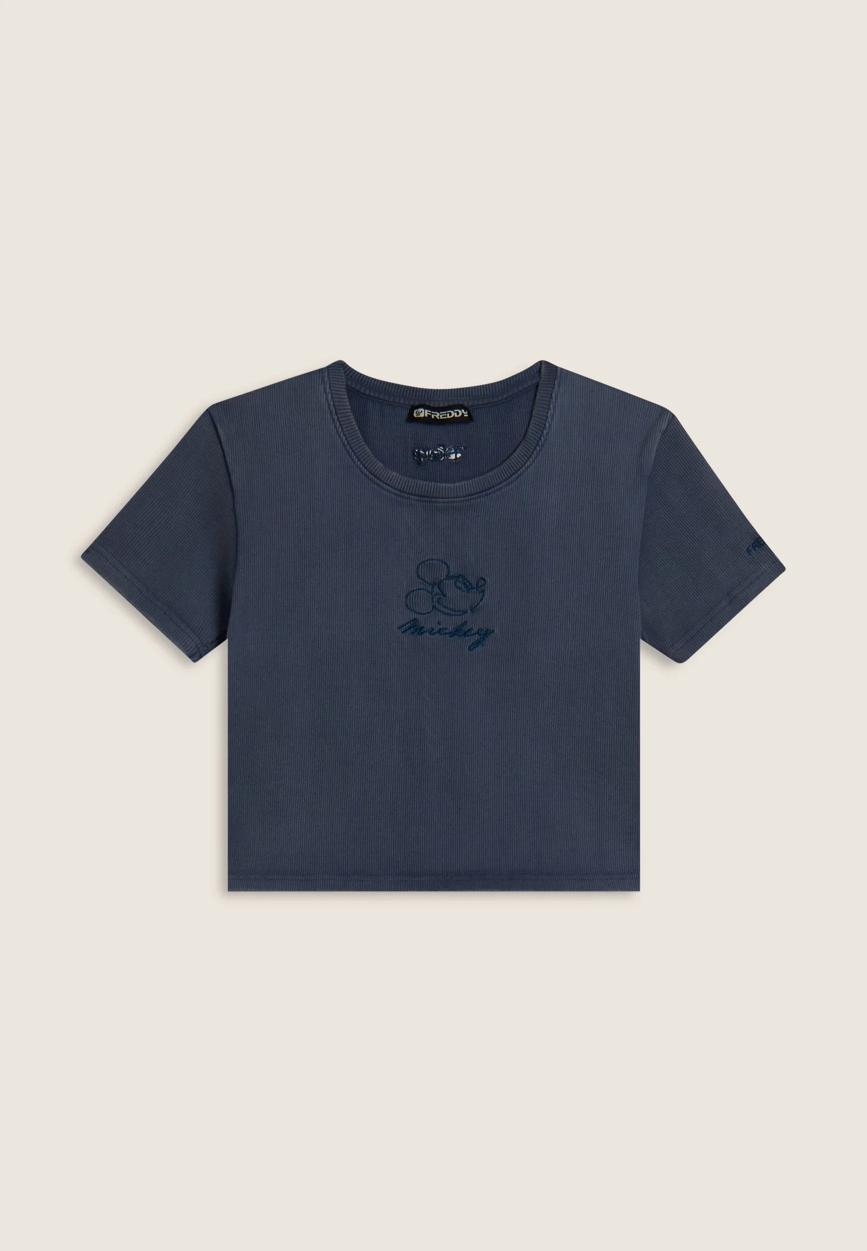 Women's ribbed cropped T-shirt with Disney embroidery