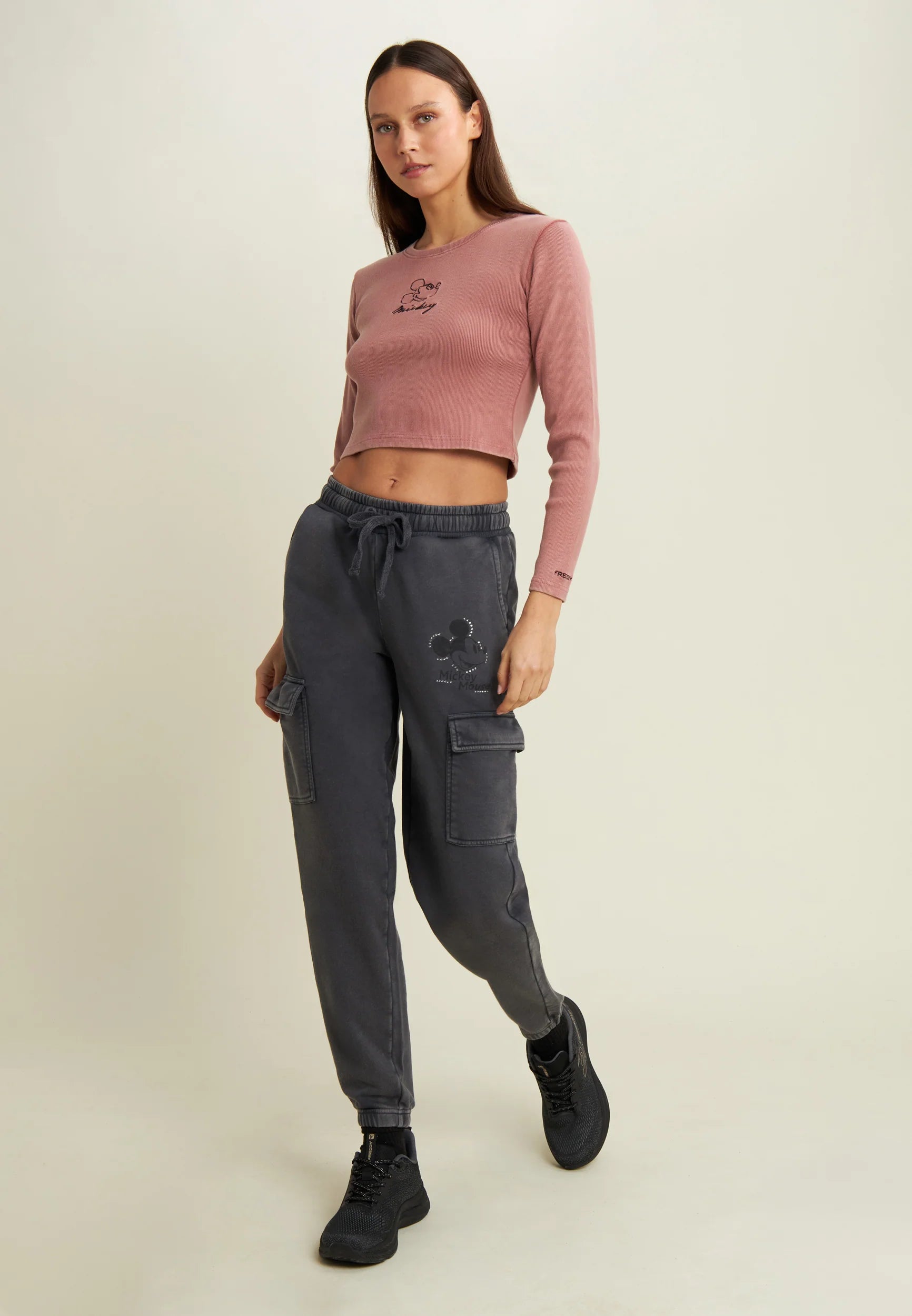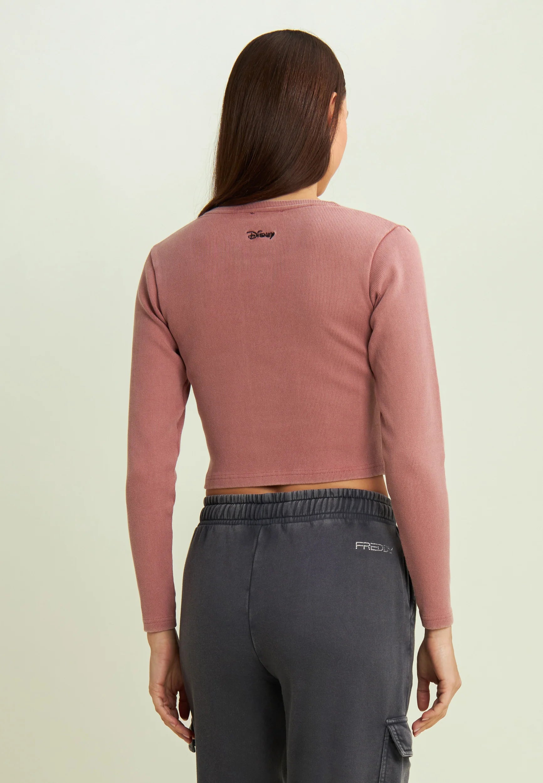 Women's long-sleeved cropped T-shirt with Disney embroidery