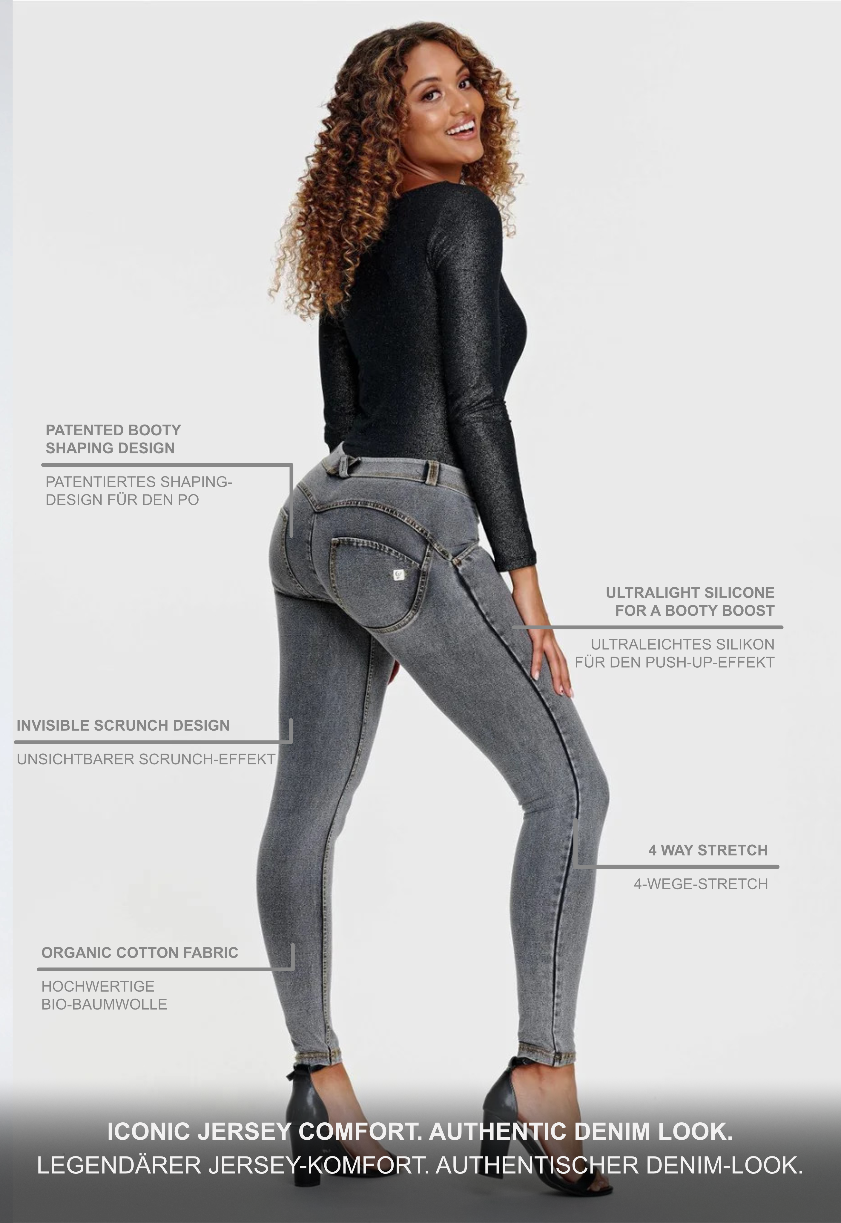 The WR.UP® Pants in Grey combine iconic Freddy style with exceptional comfort. They feature a comfortable mid waist for everyday ease. Adding to that is a sleek skinny fit that hugs your curves. The look is completed by a timeless full length, perfect for any season. Crafted combining a timeless denim aesthetic with enhanced comfort and flexibility. As part of the WR.UP® line, they feature patented technology designed to naturally enhance and sculpt your silhouette. Pants that effortlessly blend comfort and fashionable looks.