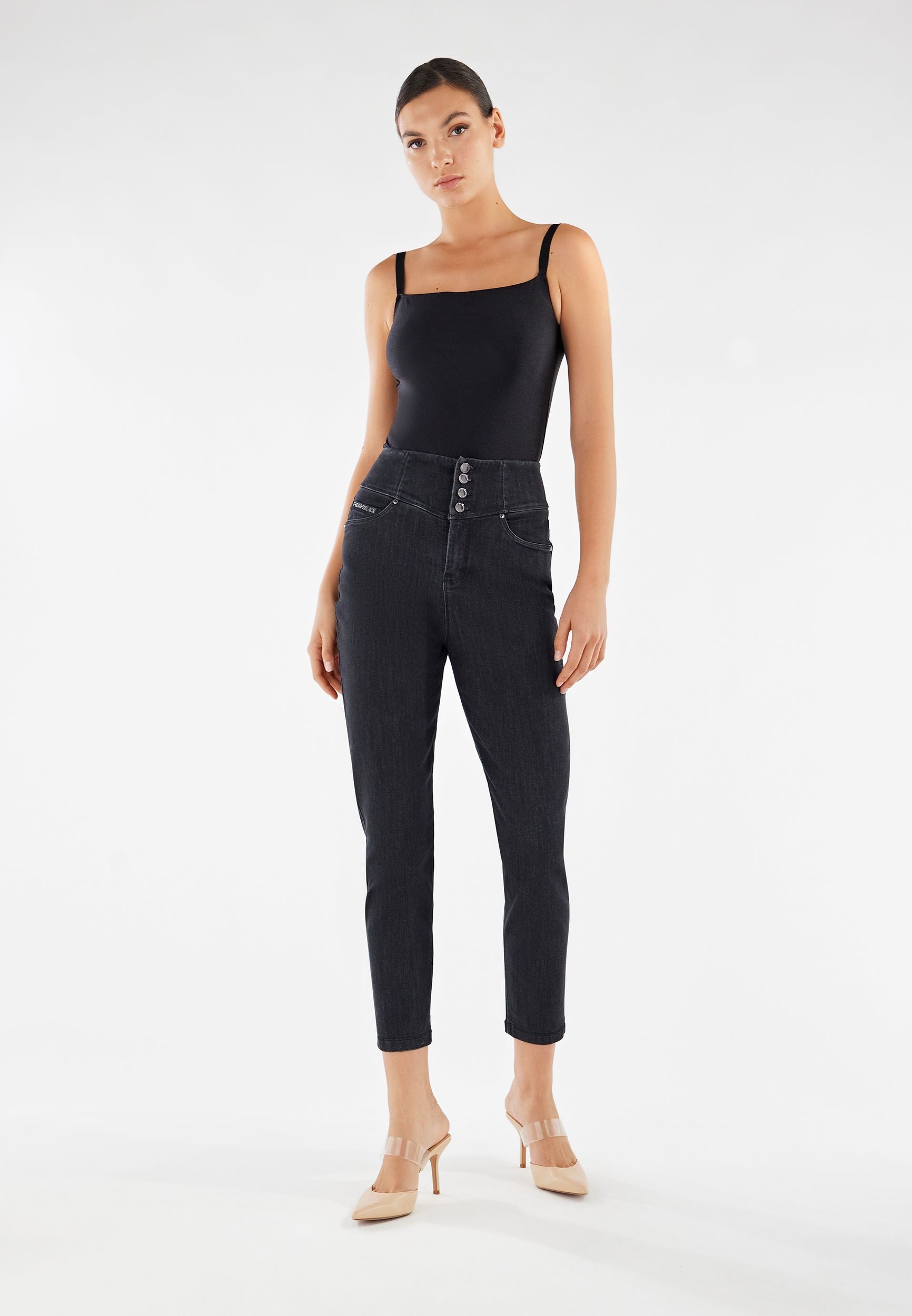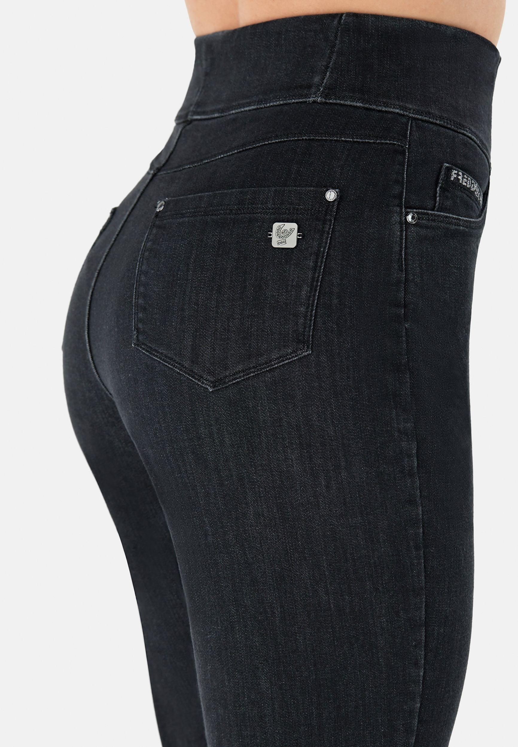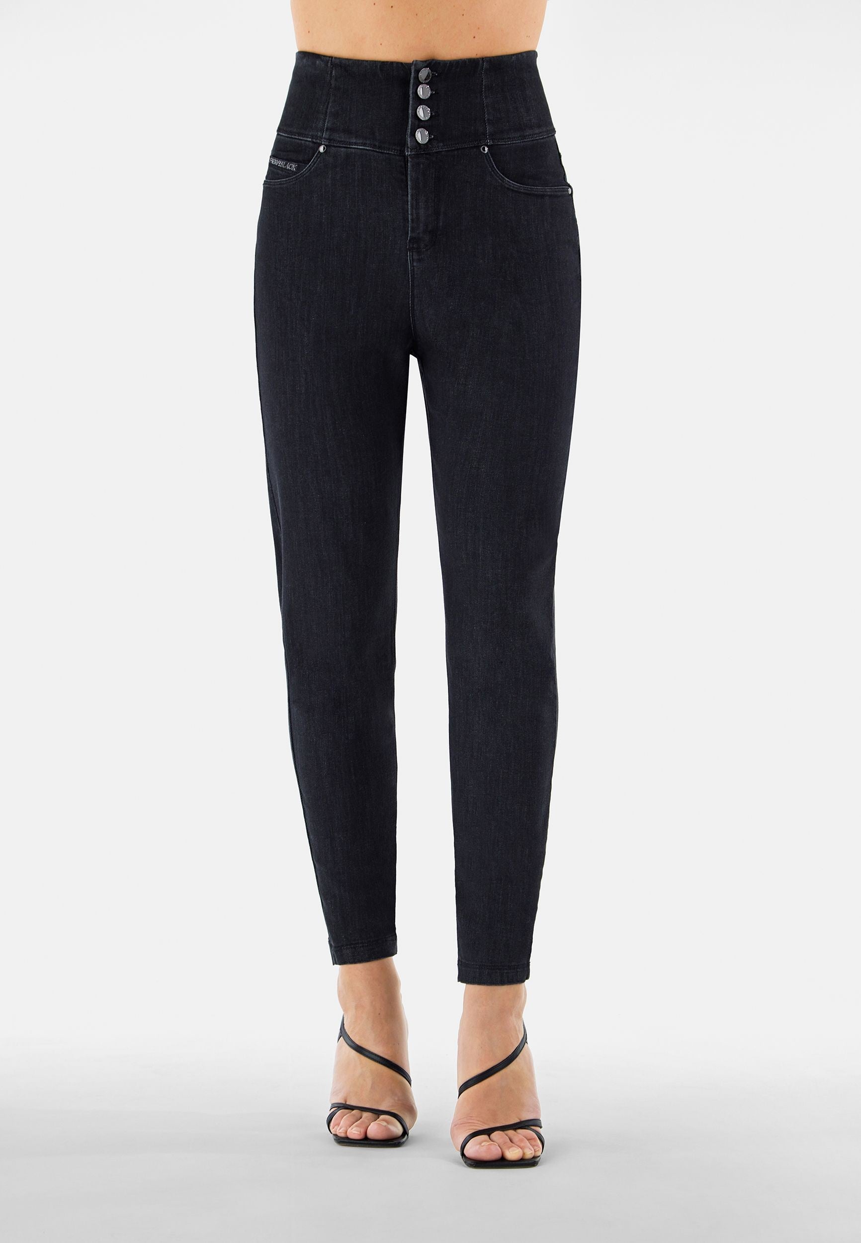 Fit Jeans Pants in Black: designed to flatter and move with you. It combines with a timeless full length, perfect for any season. Adding to that is a flattering high waist that offers gentle support. The look is completed by a sleek skinny fit that hugs your curves. Crafted combining a timeless denim aesthetic with enhanced comfort and flexibility. Your go-to piece for days when you just want to feel great.