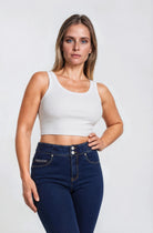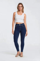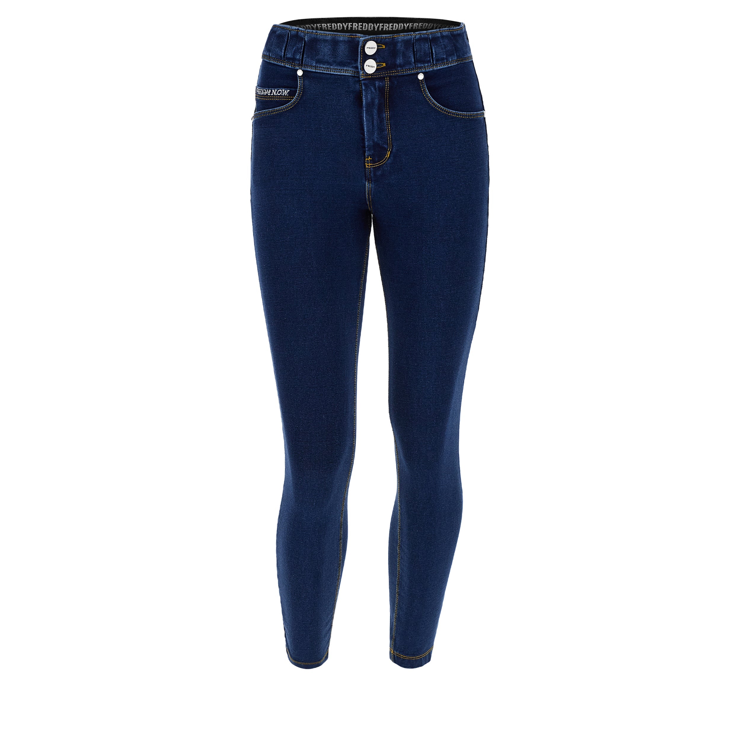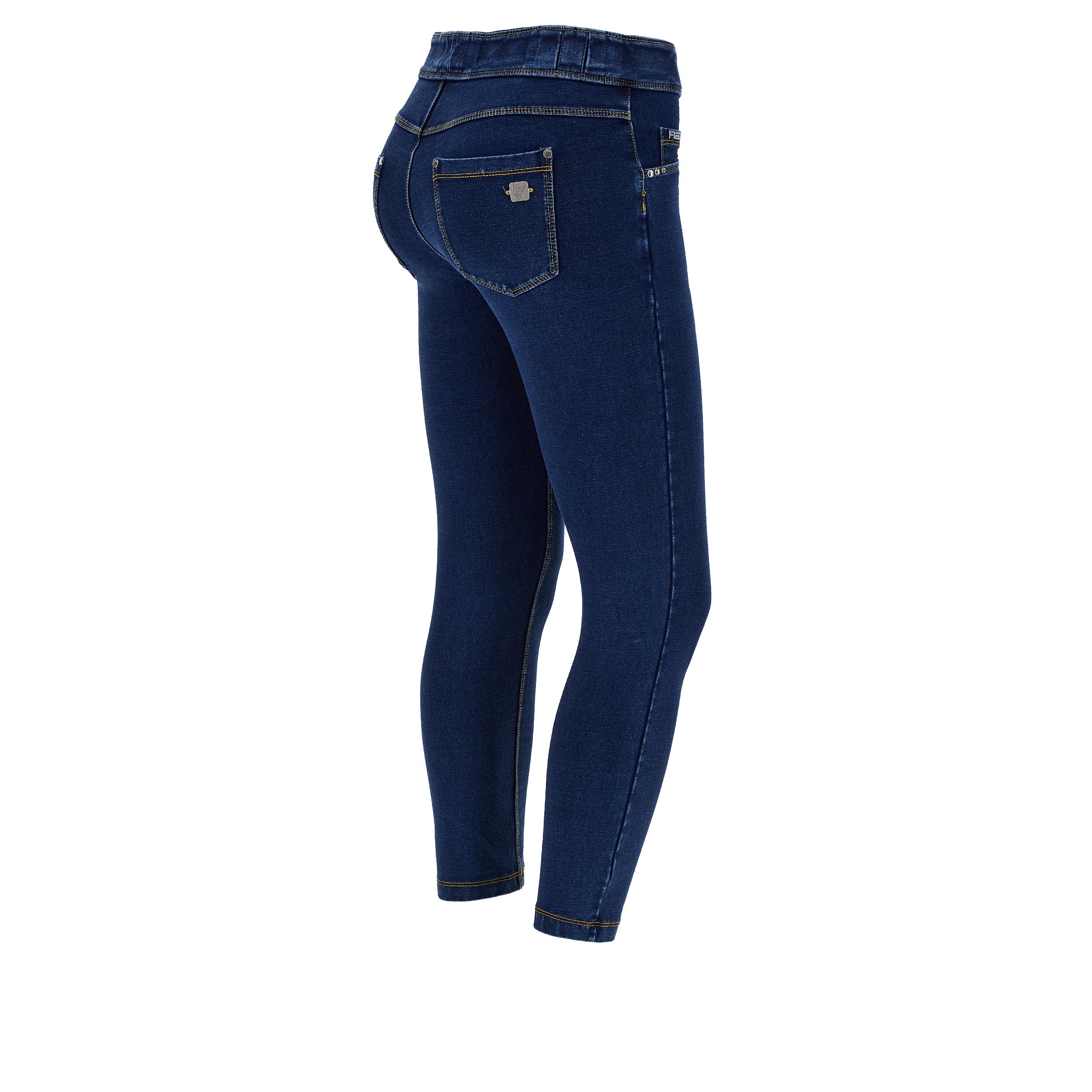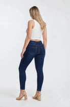 N.O.W. Comfort Mid Waist Skinny 7/8 Denim Jeans - Denim Dark Blue - Yellow Seam