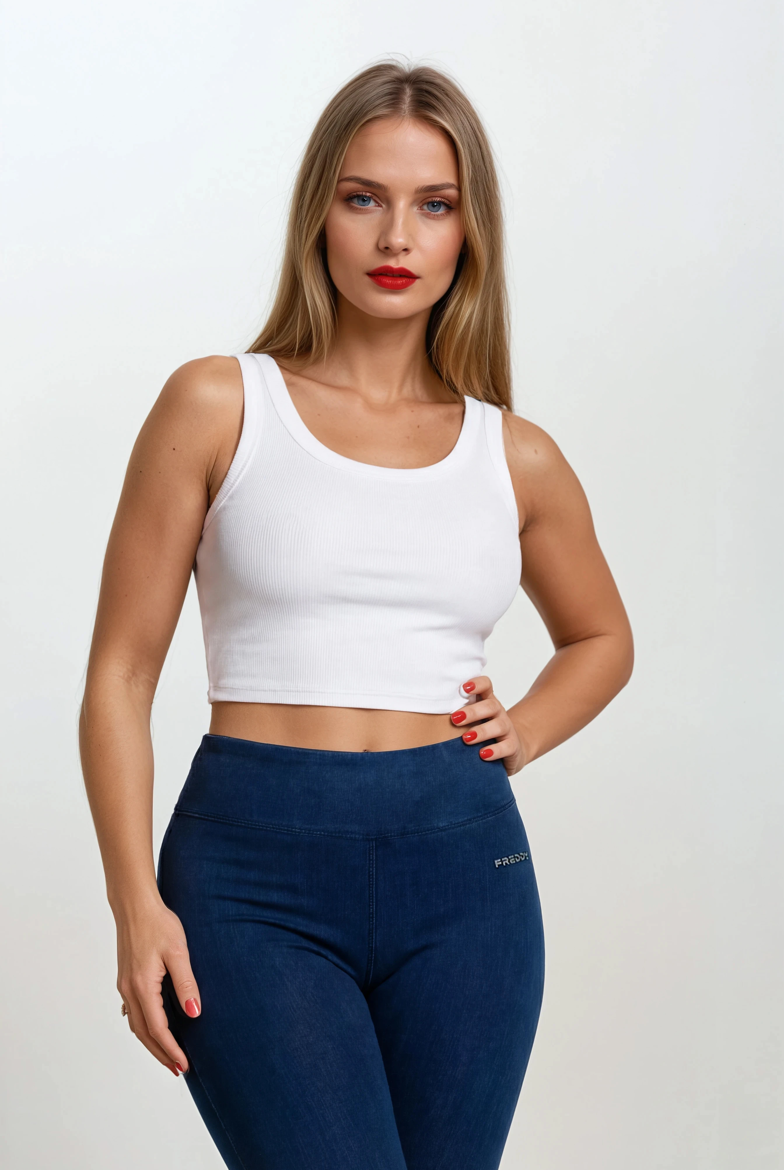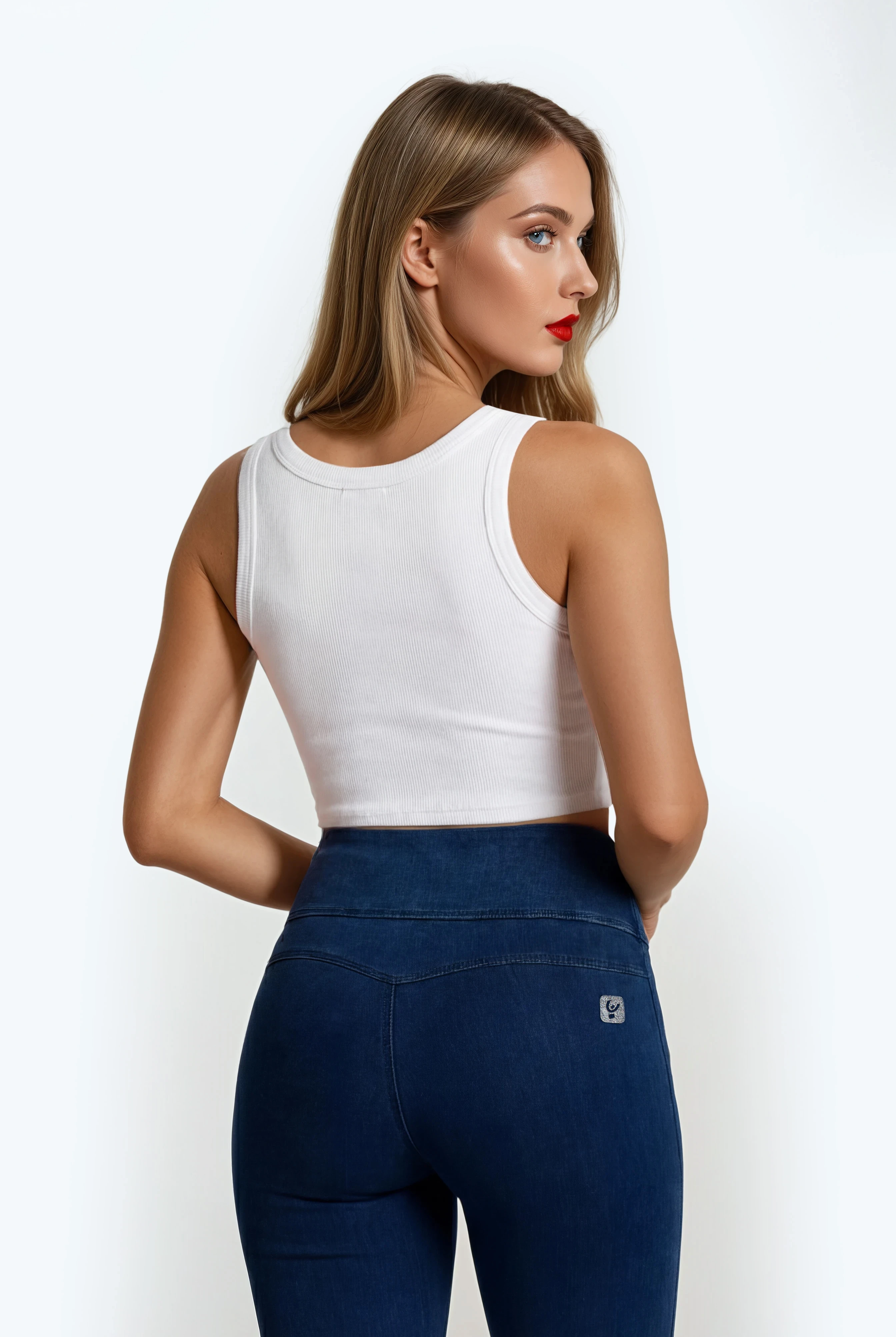 NOW® Pants in Blue: designed to flatter and move with you. It combines with a comfortable mid waist for everyday ease. Adding to that is a timeless full length, perfect for any season. The look is completed by a sleek skinny fit that hugs your curves. Crafted designed with a stretch denim-effect material for authentic style and easy movement. Belonging to the NOW® collection, these pants prioritize ultimate comfort and freedom, moving effortlessly with you. Perfect for countless occasions, from casual to chic.