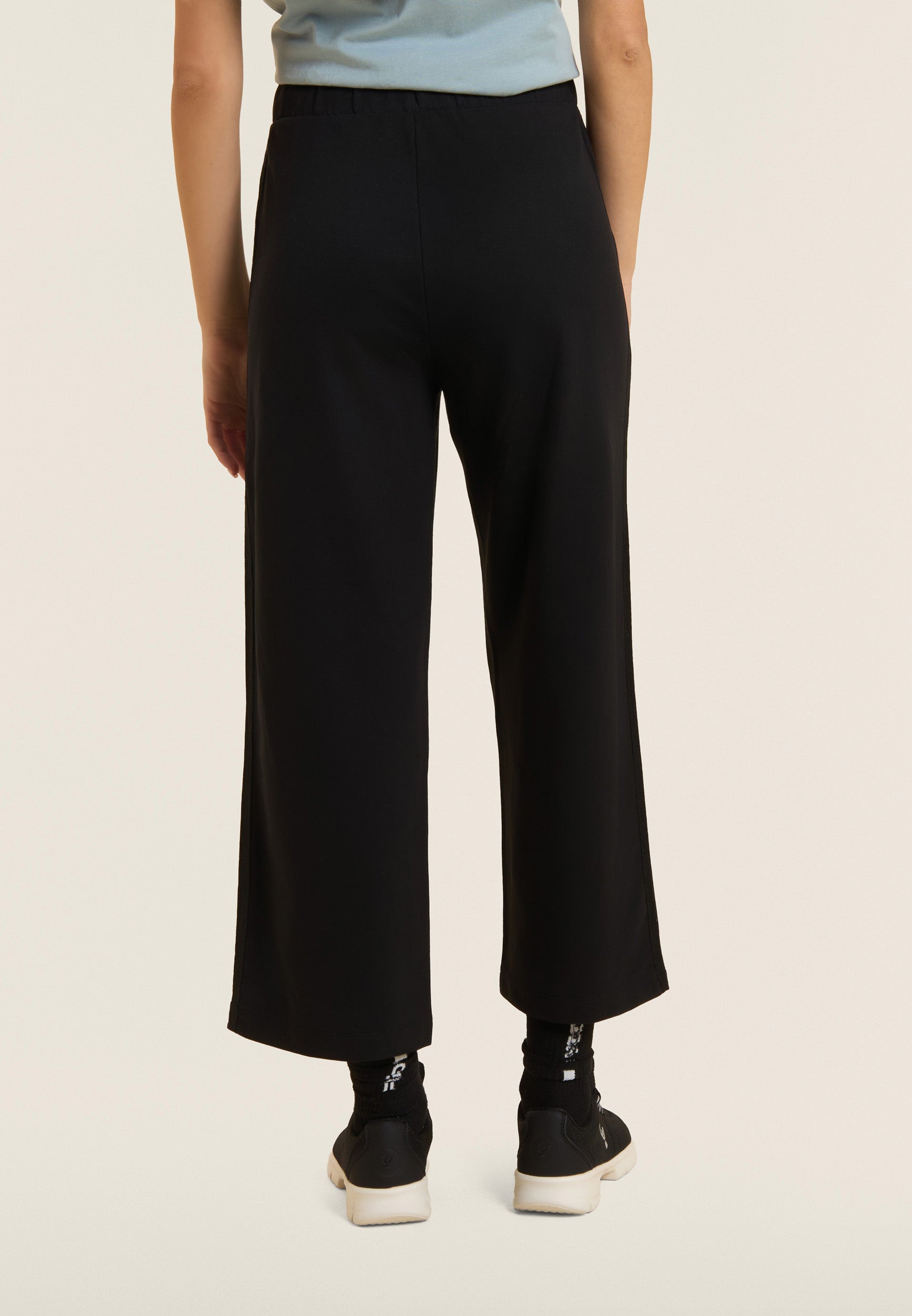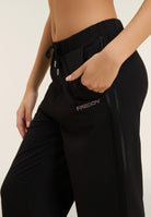Athletic trousers with comfort fit, wide leg and cropped length, ideal for light activities and relaxing moments. The waist has internal elastic and is adjustable through the drawstring. The FREDDY logo in light pink beads on the heart and the shiny elastic inserts decorating the side seams add a touch of style. Made of heavy cotton stretch jersey, they offer maximum comfort.