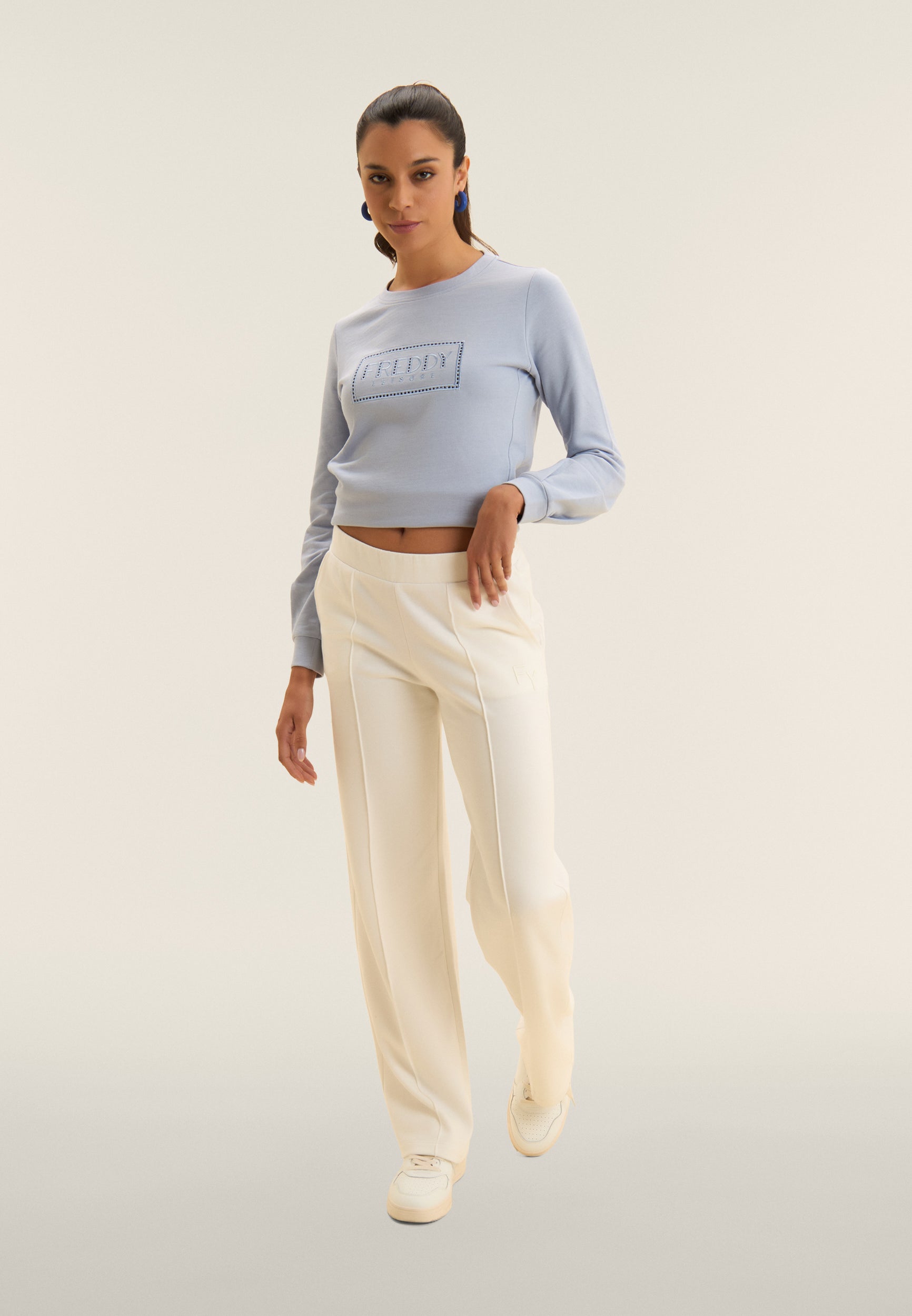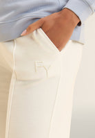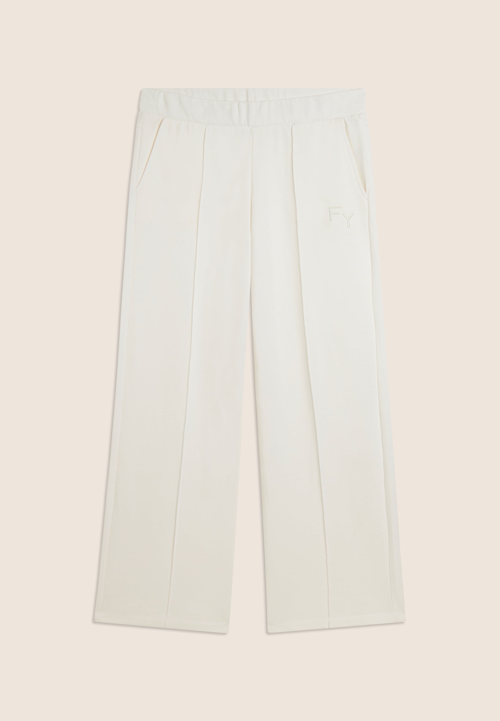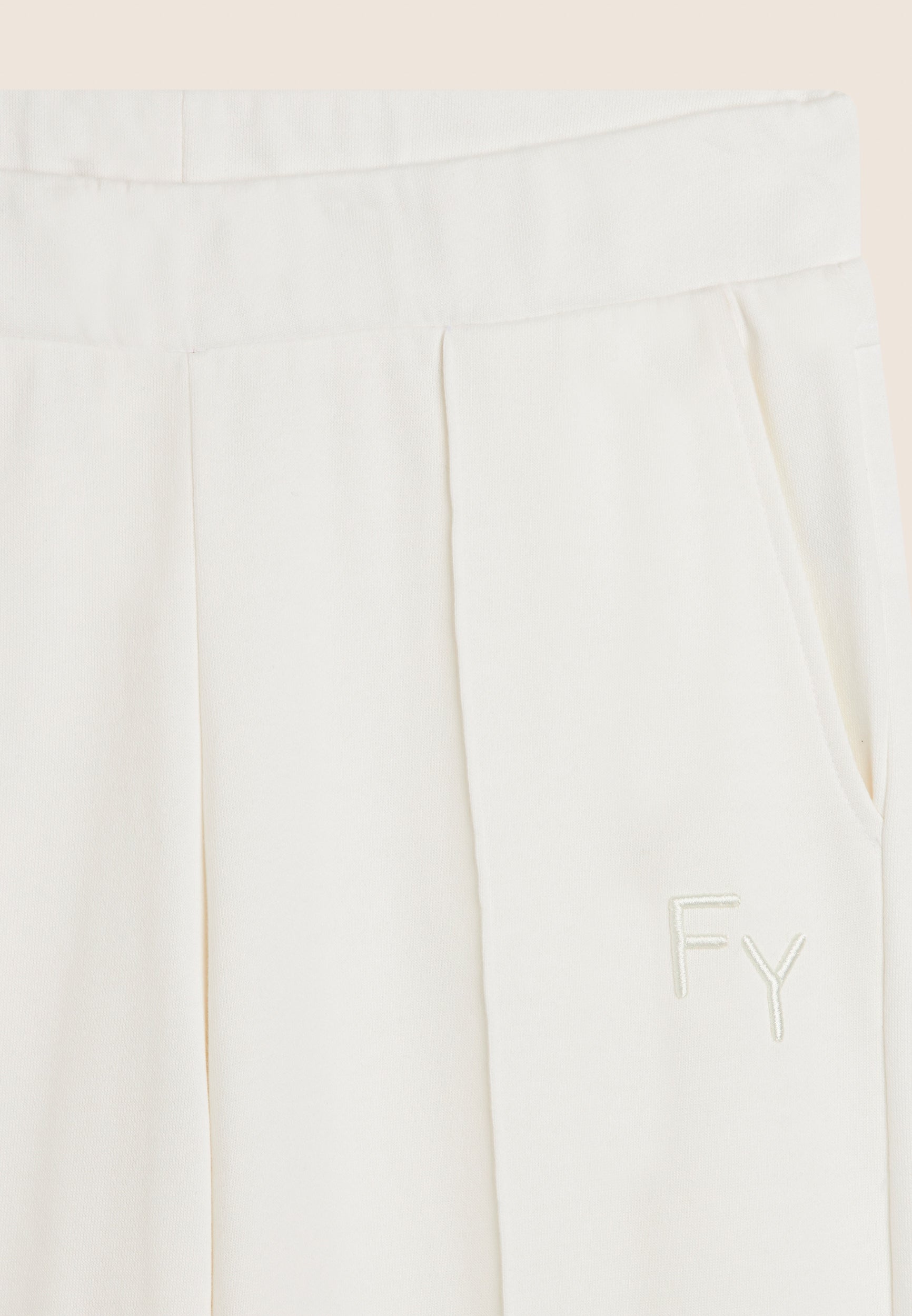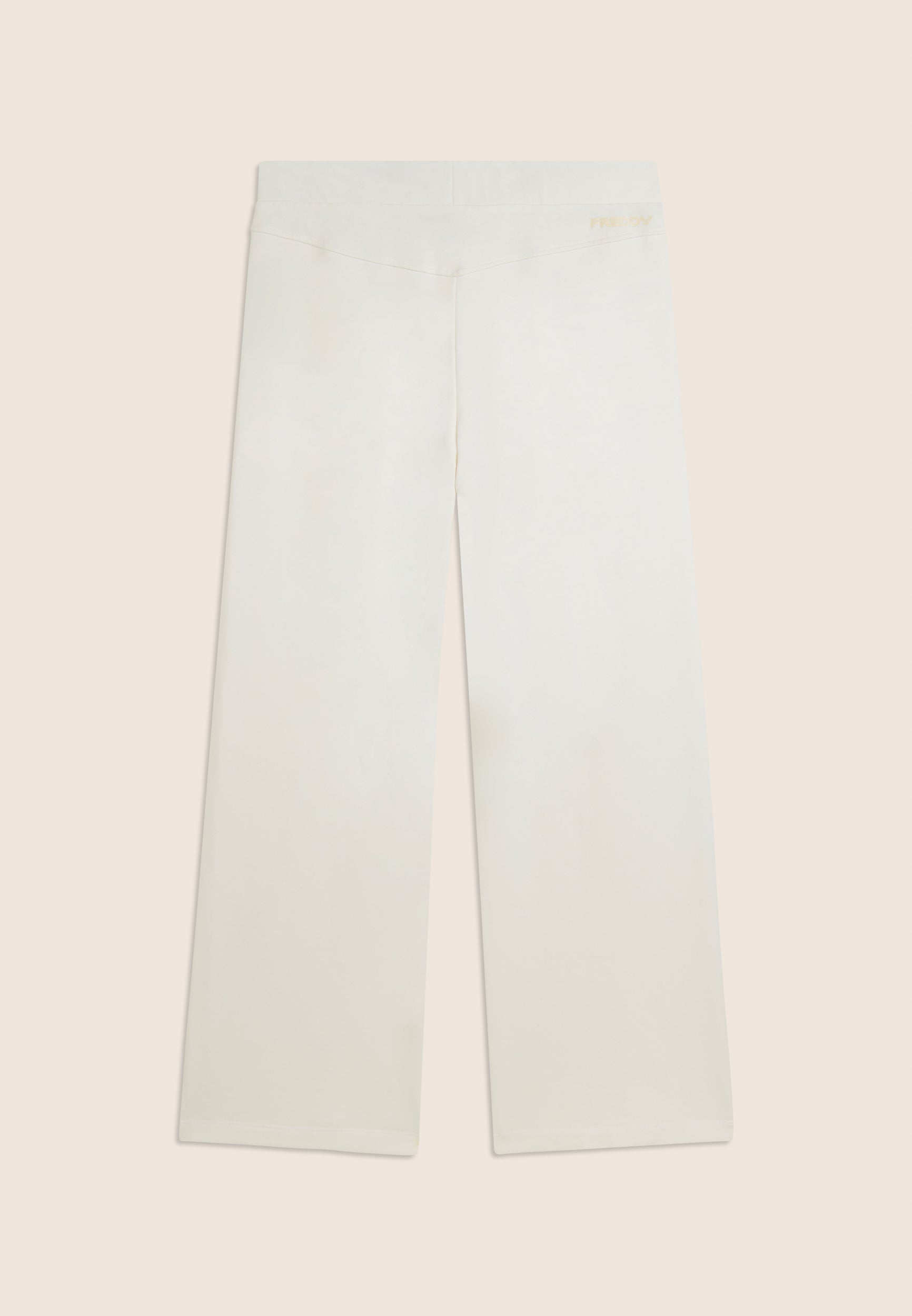 Comfort-fit athletic trousers with a wide leg and regular length and waist. The FY logo embroidered on the side and a small Freddy logo printed on the back below the waist add distinctive details. The decorative stitching in the centre of the leg enhances the cut, and the besom pockets offer practicality. Made of French terry, a soft and breathable fabric that guarantees maximum comfort.