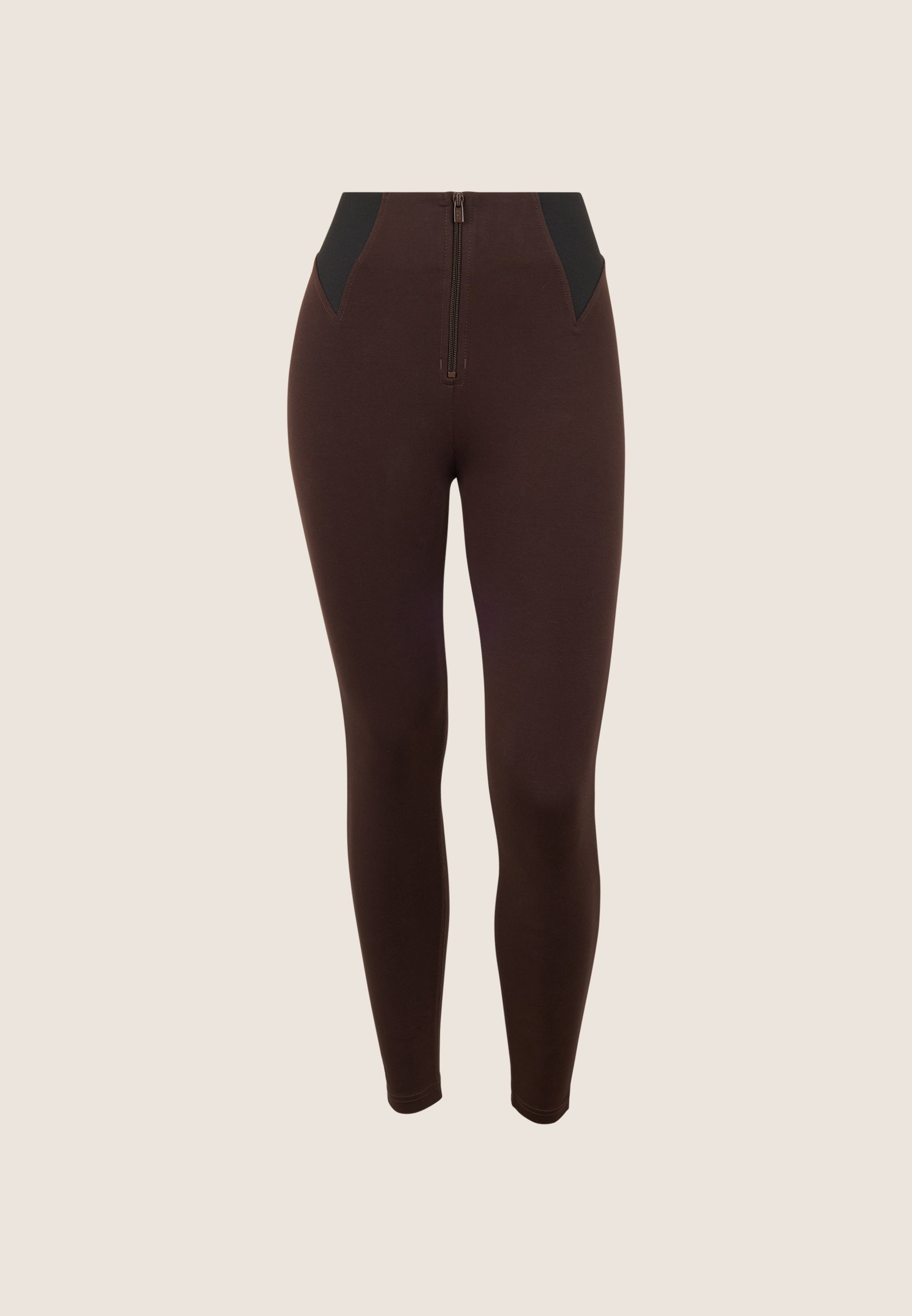 WR.UP® super skinny push-up 7/8 length trousers in heavy organic stretch cotton jersey. High waist with central zip and large side inserts in jacquard elastic, for a graphic effect that enhances the profile of the leg.